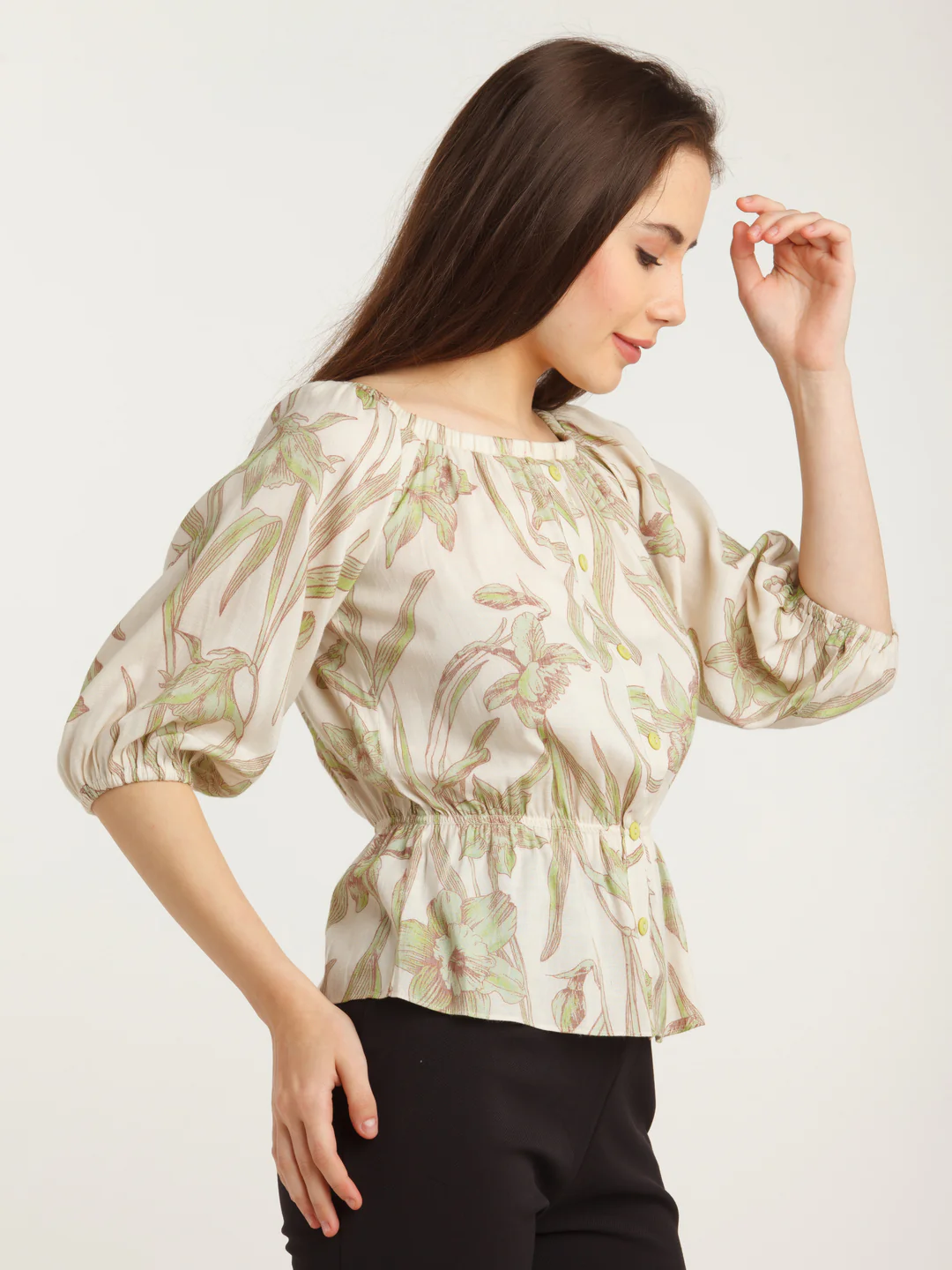 - Description : Off White Printed Offhoulder Top For Women